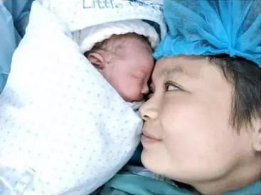 (▲产房里的妈妈第一次看到自己的孩子,幸福的笑了)